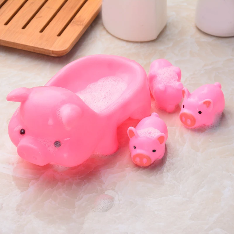 astounding 4 Piece/Set Lovely Pink Pig Shaped Baby Bath Toy Rubber Float Squeaky Toy Bath Toy